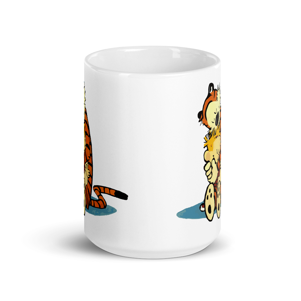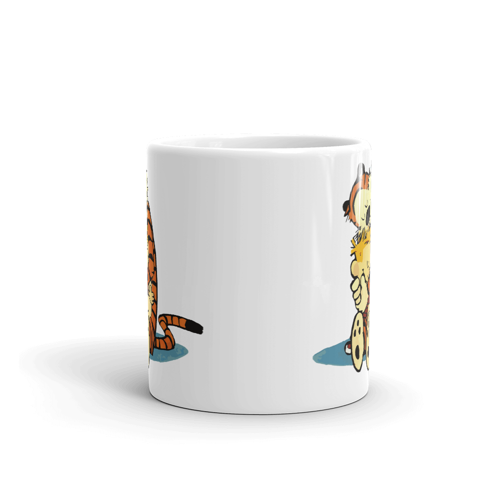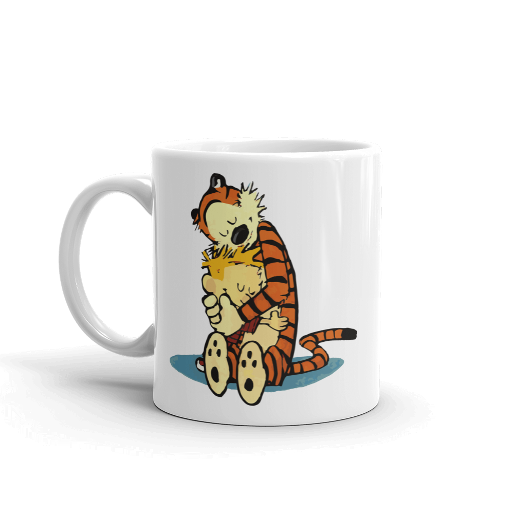 This cute mug shows our beloved duo hugging! Calvin, the precocious, mischievous, and adventurous six-year-old boy, and Hobbes, his sardonic stuffed tiger was a daily comic strip commonly cited as "the last great newspaper comic". It was created by the cartoonist Bill Watterson and has enjoyed broad and enduring popularity, influence, and academic interest.