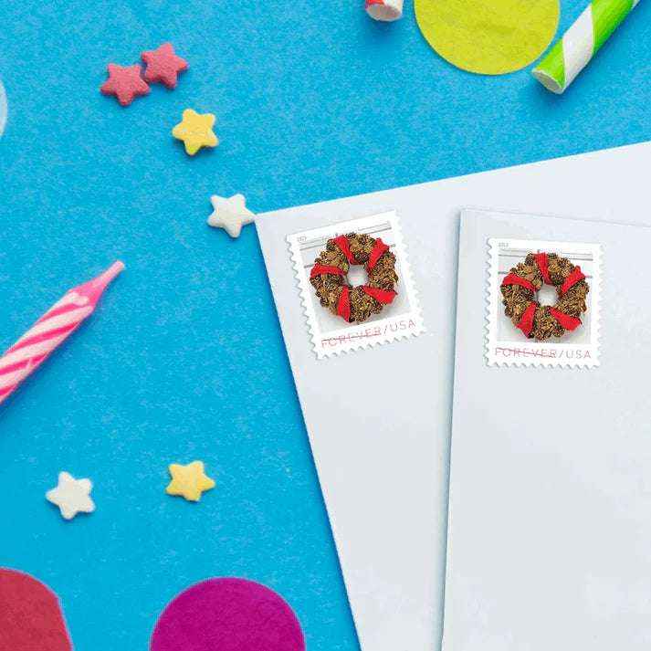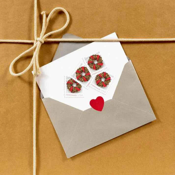 Each stamp showcases a beautifully designed wreath, inspired by the rich holiday traditions of early America. The classic yet contemporary designs evoke feelings of warmth and welcome, making them ideal for your festive correspondence.